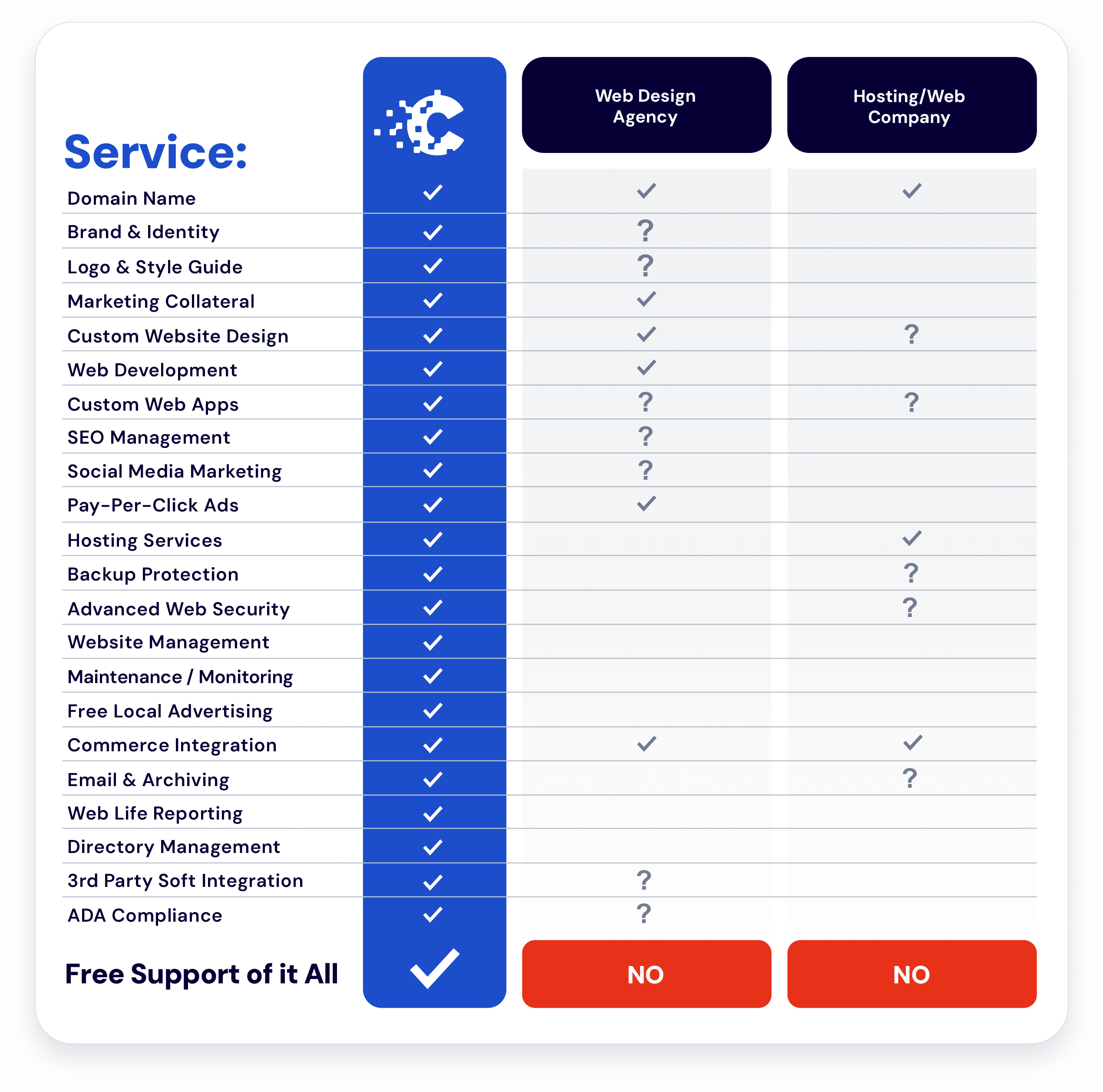 - And, supports all services with a dedicated team of support specialists, “in-house”.