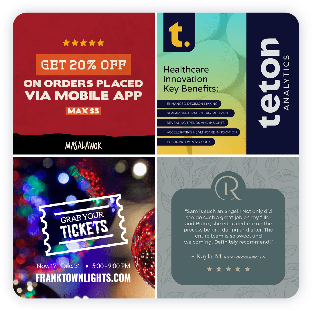 Complement your team’s content strategy with enhanced brand marketing that extends your reach on social media with one of our Social Media Brand Packages. The Packs include six (6) or fifteen (15) custom-designed, evergreen, square social posts each quarter that give your brand a premium, consistent presence to reinforce desired messaging.